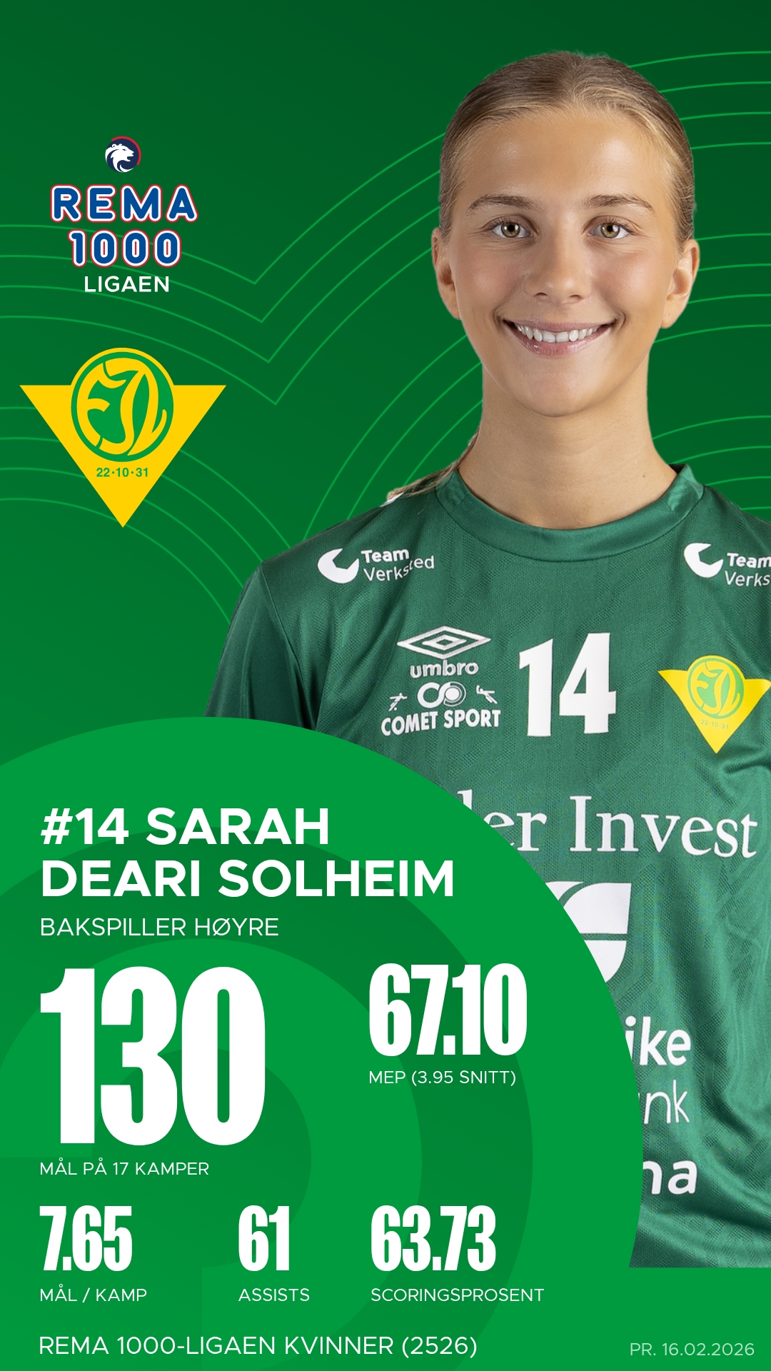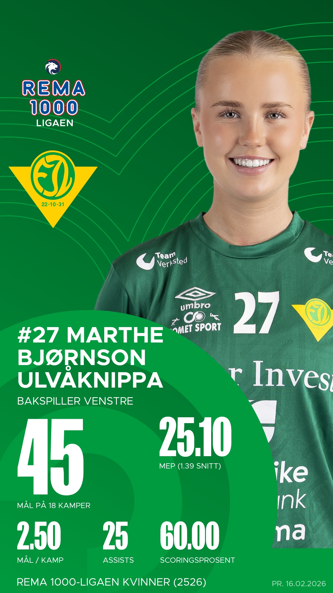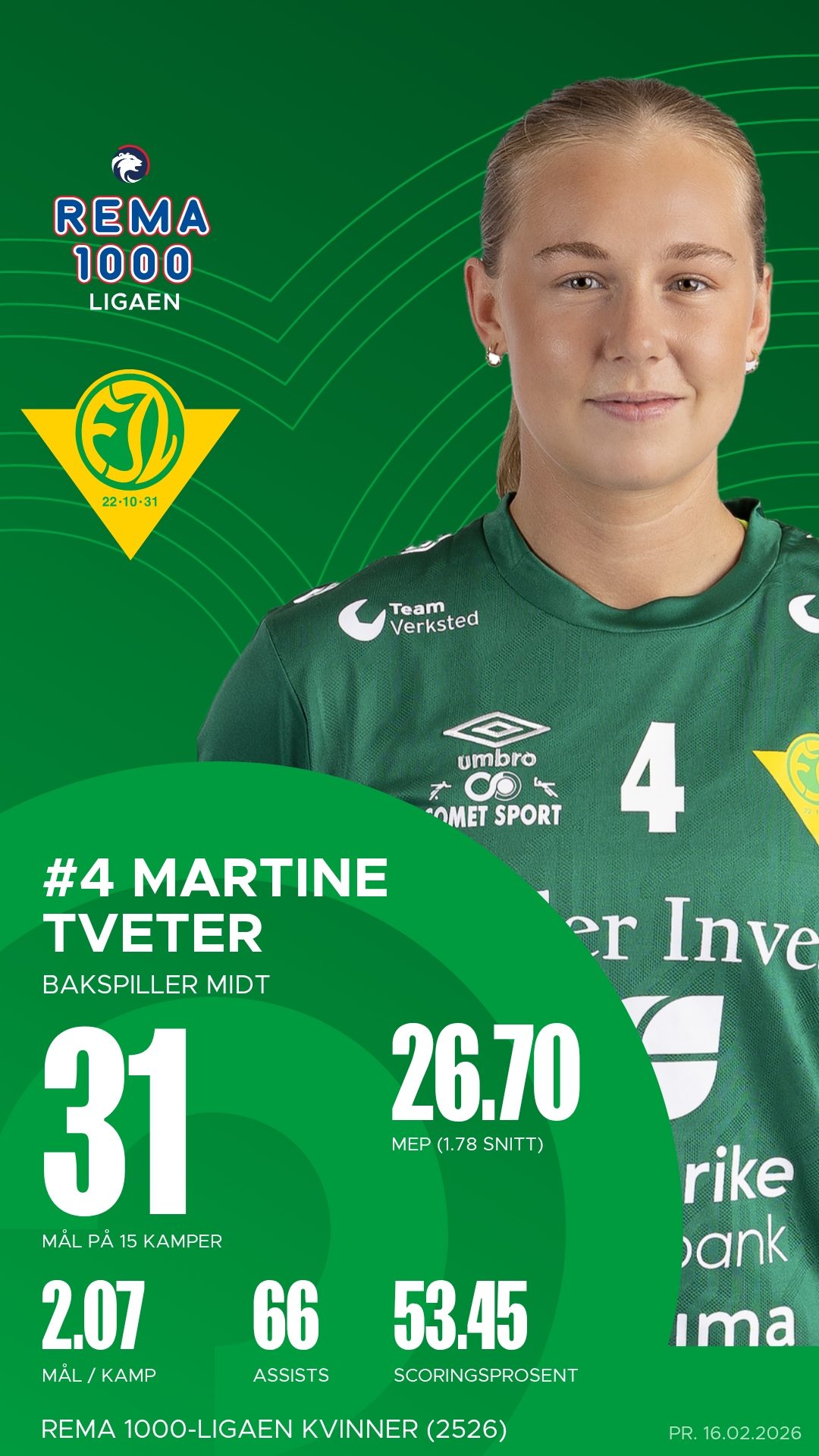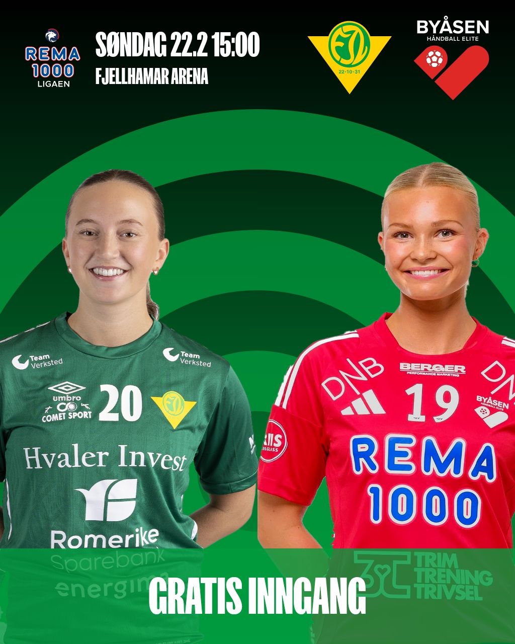Alt ligger til rette for en intens og underholdende kamp i Fjellhamar Arena. Fjellhammer-jentene vet at poengene på hjemmebane kan bli avgjørende for å sikre plassen i REMA 1000-ligaen, og med et voksende publikum som støtter laget gjennom hele kampen, kan energien fra tribunen bli den ekstra faktoren som tipper kampen i grønn favør. Publikum bør følge ekstra godt med på samspillet mellom Sarah Deari Solheim og Martine Tveter – duoen som har vært hjertet i våres angrepsspill denne sesongen. Det blir fart, fysikk og nerve, og det er liten tvil om at vi vil gjøre alt for å sørge for at poengene blir igjen i Lørenskog. Ikke glem at det er GRATIS INNGANG denne dagen og vi gleder oss til å se mange av dere i Fjellhamar Arena! Avkast kl.15.