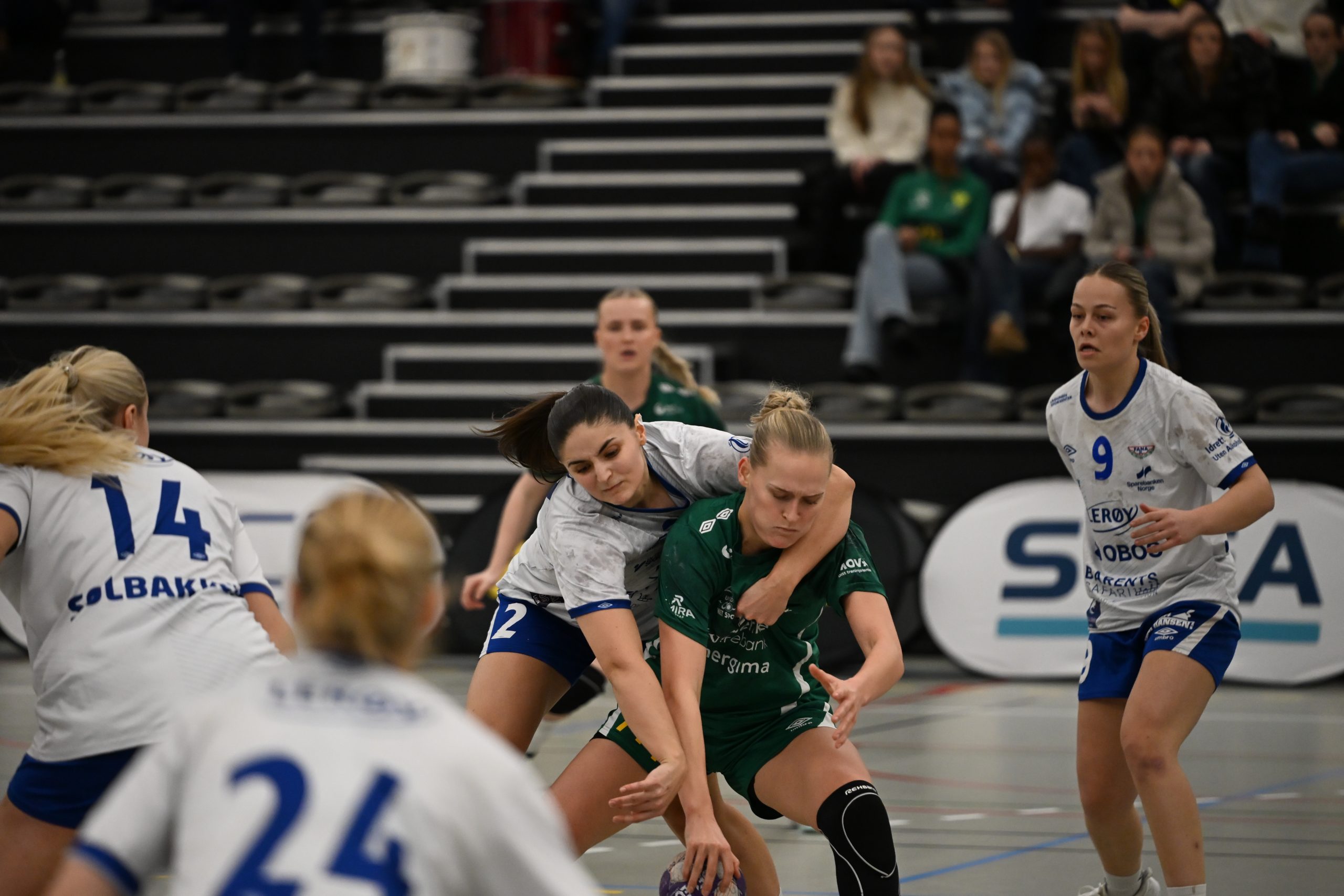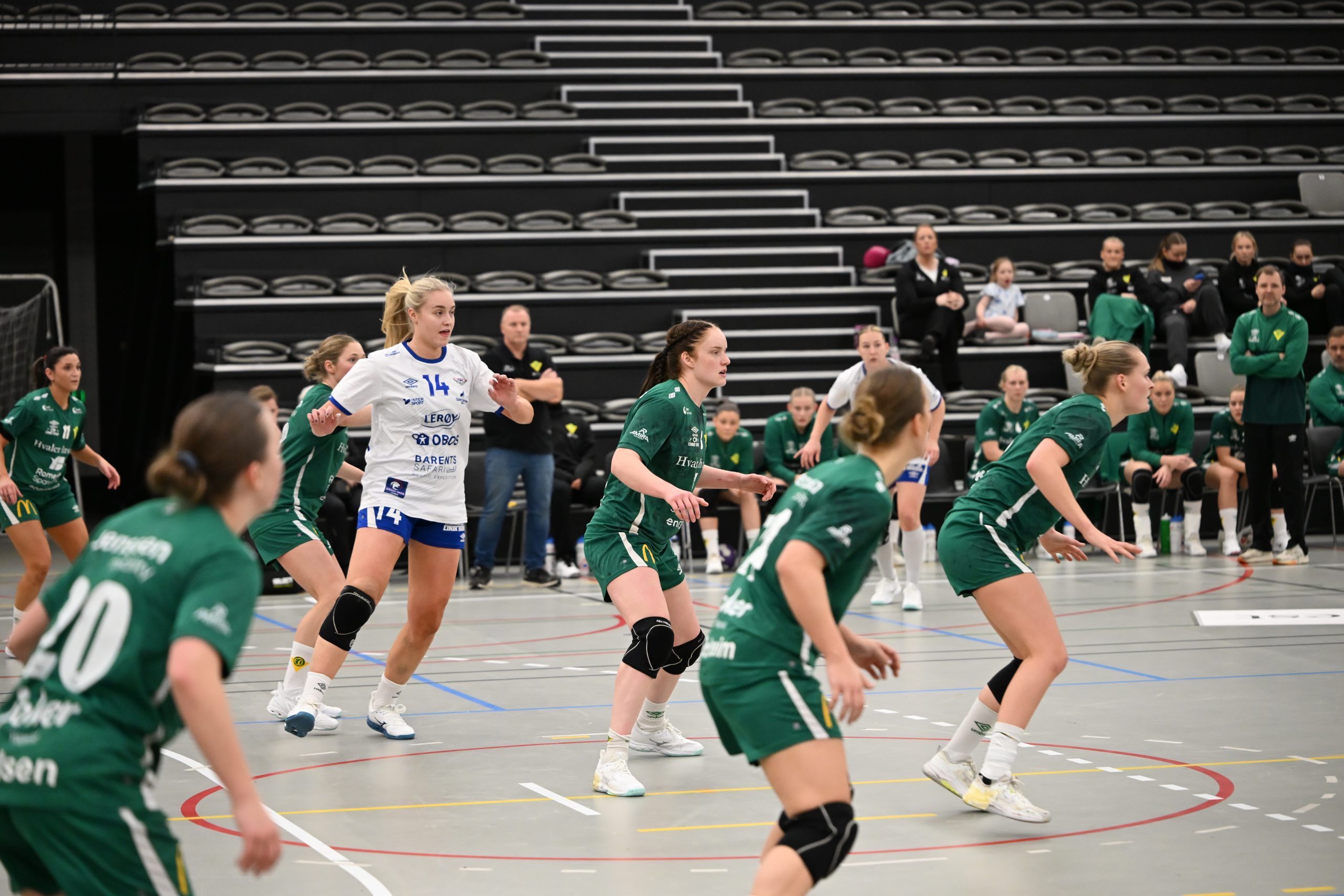 Første omgang startet med høy intensitet fra begge lag. Allerede etter to minutter vartet Fjellhammers målvakt Ida Wall Bakken opp med en sterk redning på et nærskudd fra Fanas linjespiller Fride Heggdal Stølen. Kort tid etter svarte Fjellhammer med et flott angrep der Emma Egge Edner satte inn kampens første mål for hjemmelaget etter assist fra Sarah Deari Solheim. Publikum våknet, og Fjellhammer fikk et lite momentum i angrepsspillet.