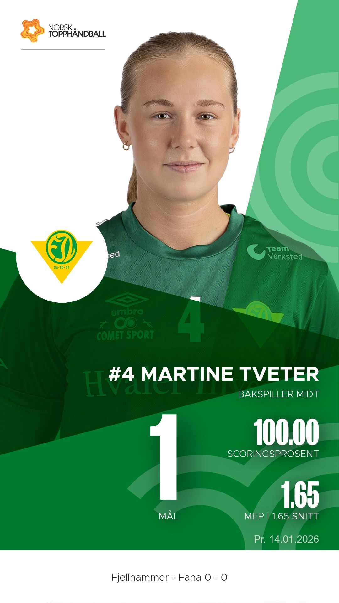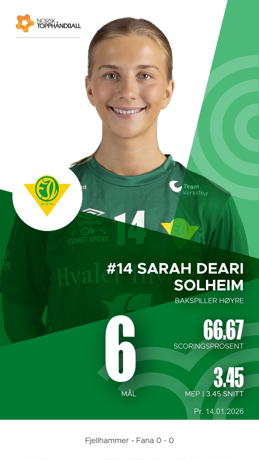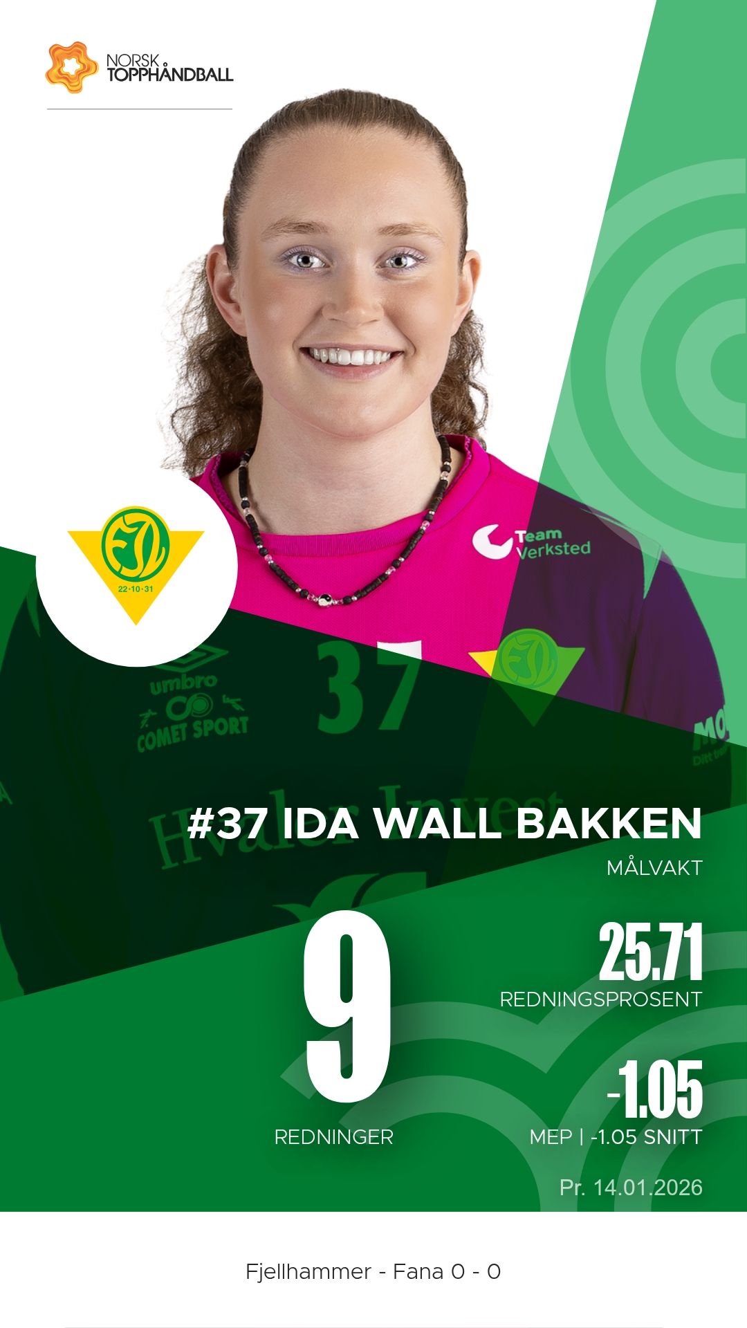 Fjellhammer tok imot Fana til kamp i REMA 1000-ligaen sesongen 2025–2026 i Fjellhamar Arena tirsdag 14. januar. Det ble en kamp der hjemmelaget åpnet friskt, men gjestene fra Bergen dro sakte fra og vant til slutt 33–22 etter 13–9 ved pause.